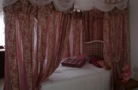 Doppelzimmer ohne Meerblick. Das Zimmer und Bad ist in Rosa gehalten. Im Sommer, da der Sonne abgewendet, angenehm frisch. Terrasse über dem Hausflur erreichbar.